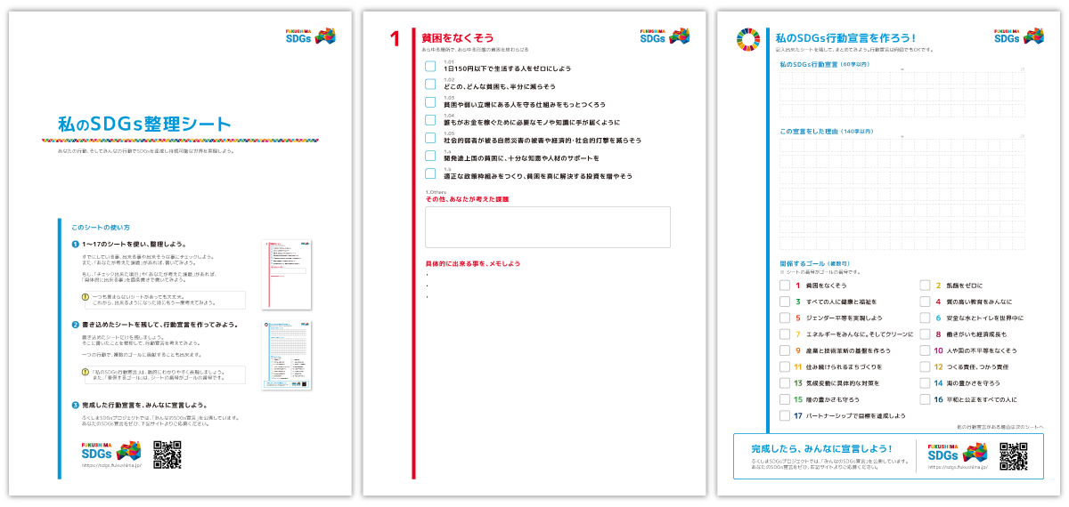 SDGs行動宣言を作る時に、役立つ「私のSDGs整理シート」を準備しました。